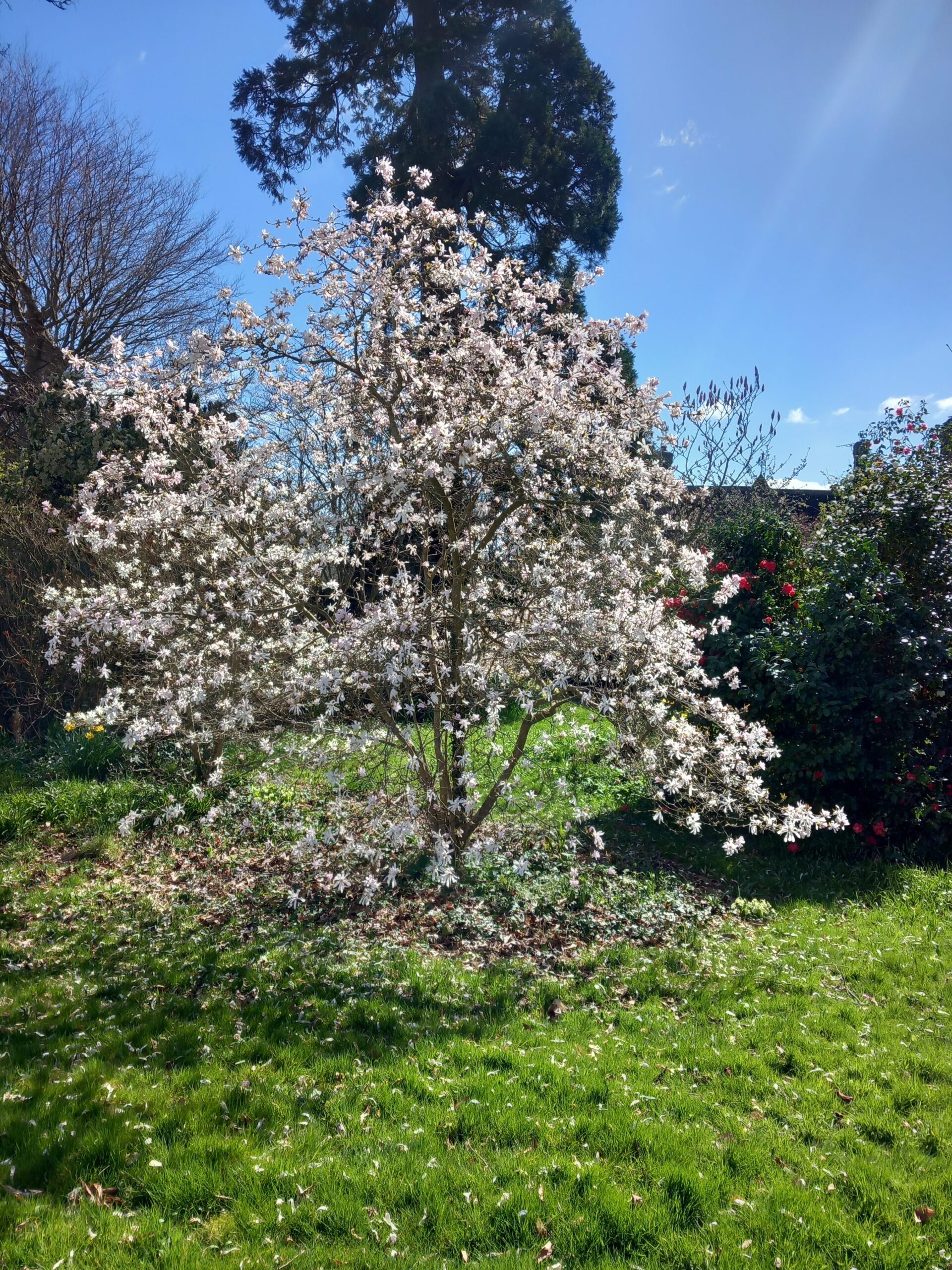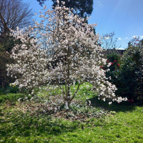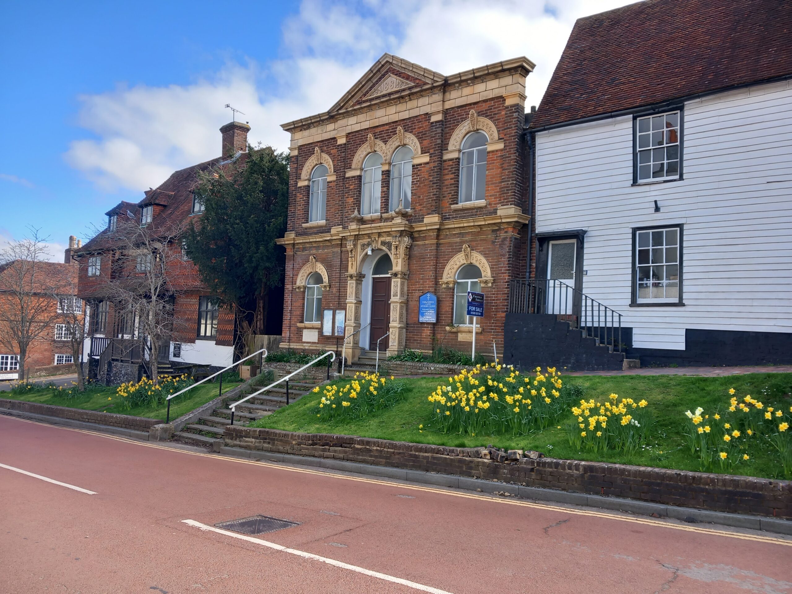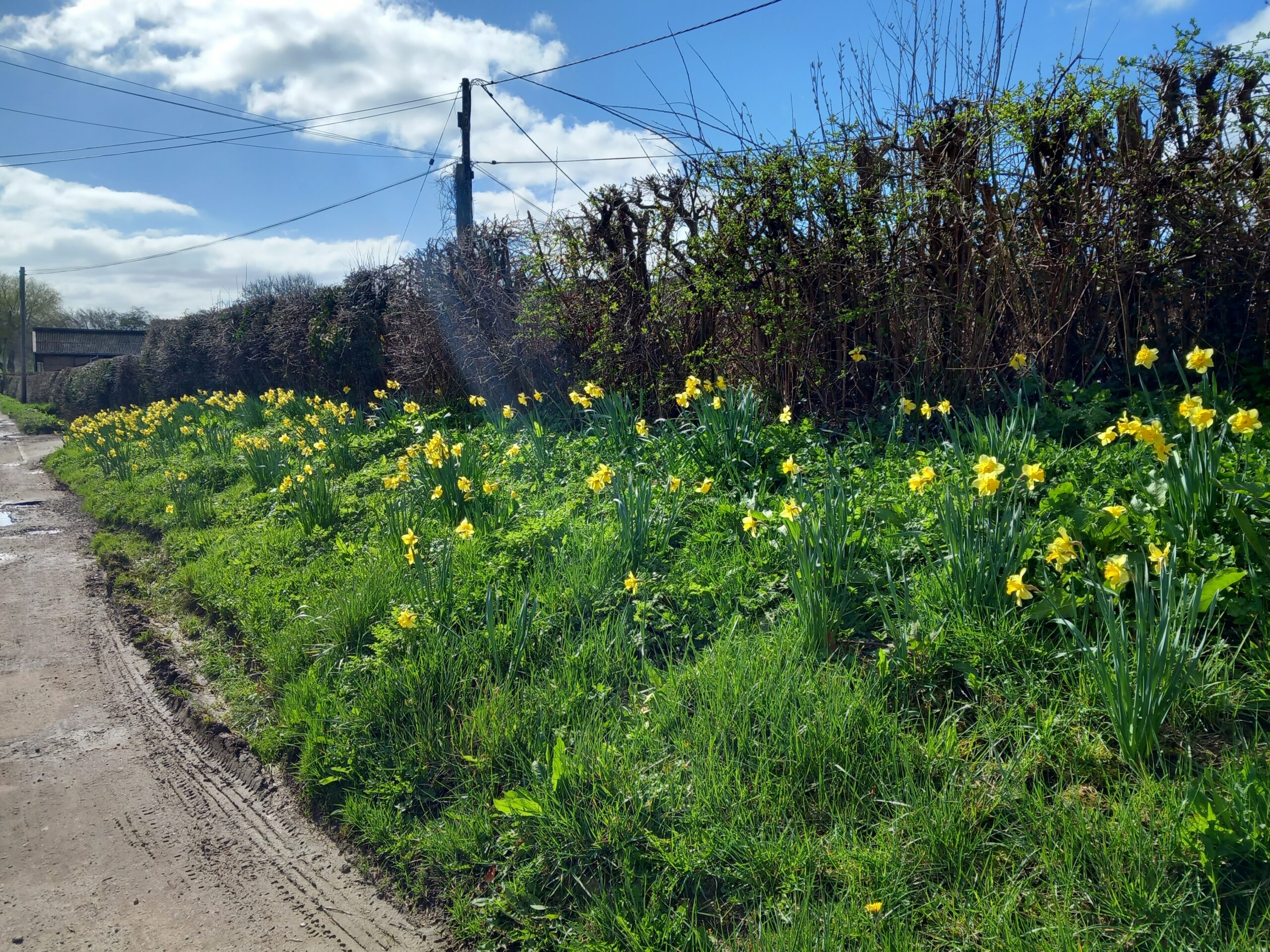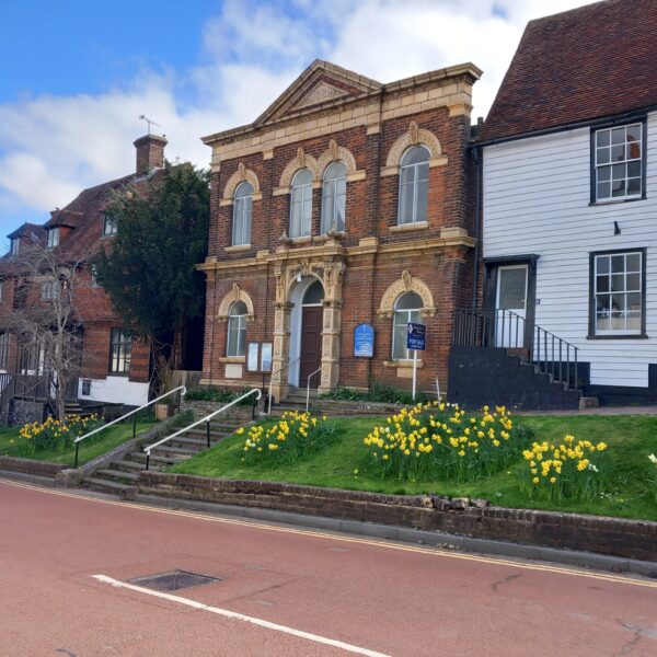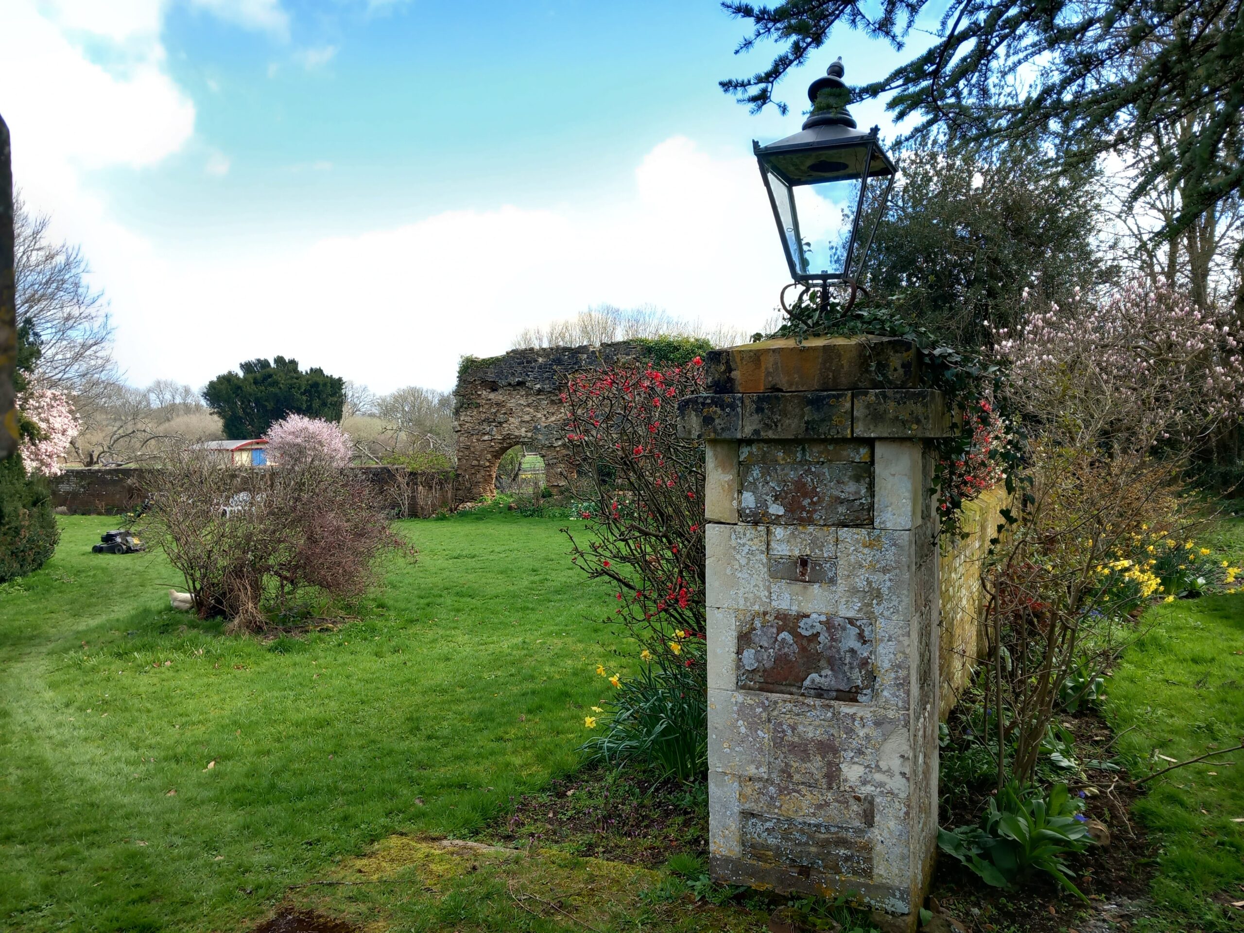 A wonderfully sunny spring-like day for this month's joint West Kent & Sussex walk. A great turnout of 18, including one prospective new member, and an excitable dog, Mabel! Although very wet and muddy underfoot, we were not deterred, firstly walking through Robertsbridge to the remains of the old abbey, then on to Ewhurst Green passing hop fields and orchards. Our lunch stop was at the White Dog Inn at Ewhurst Green, overlooking Bodiam Castle in the valley below. The landlord had kindly allowed us to eat our packed lunches in the garden in return for buying a drink or two.