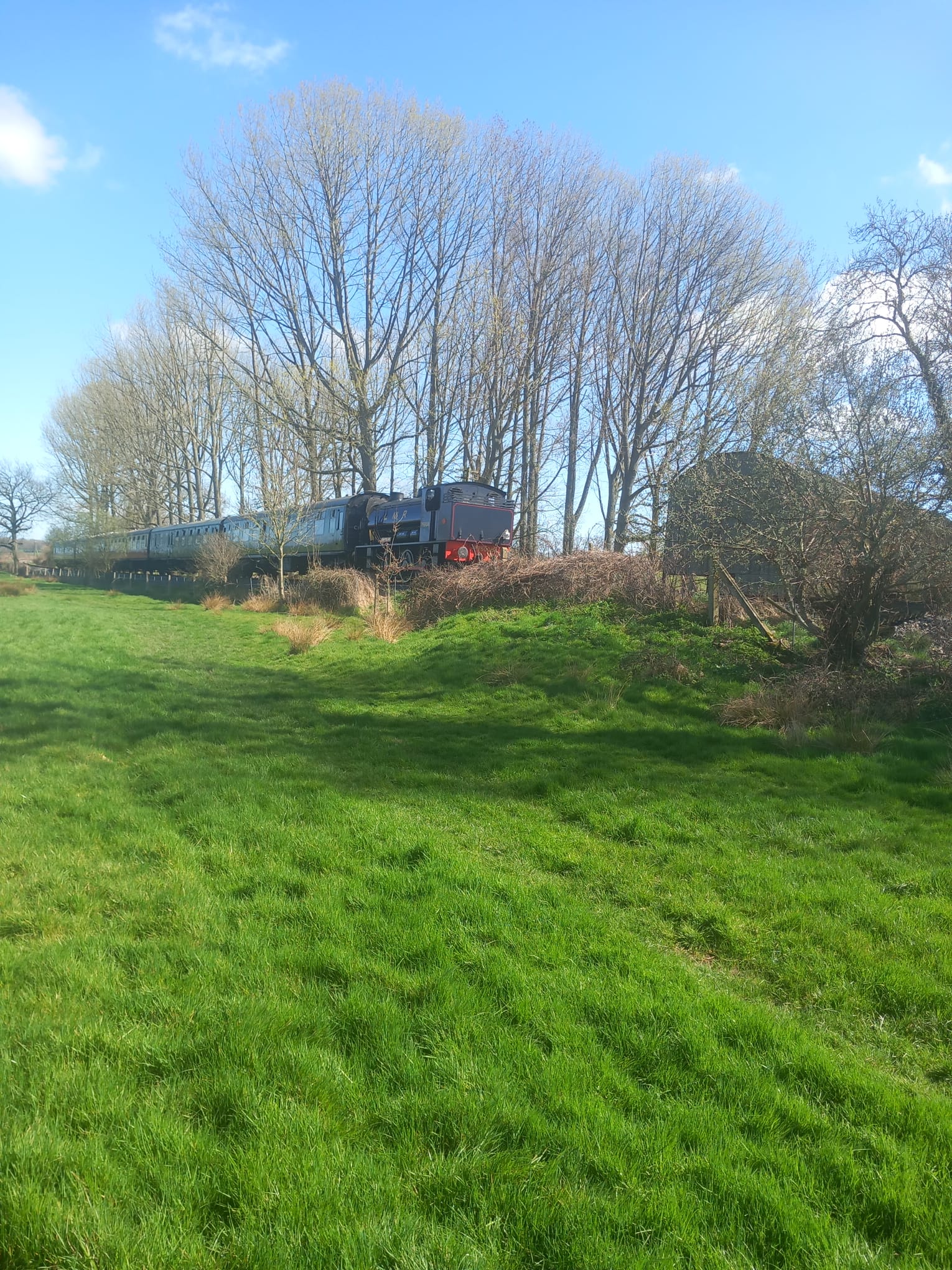 After lunch, we slightly re-traced our steps, to descend into the valley, crossing the heritage railway line with a train soon approaching, and on to Bodiam Castle. Once there, we did a circuit of the castle, before continuing along the valley toward Salehurst, where some of our number decided to look in the church and then stop for drinks at the Salehurst Halt; being rewarded with some roast potatoes, crackling and a bowl of gravy!! What a way to end the walk, but we hadn't, it was a 25 minute walk back into Robertsbridge!