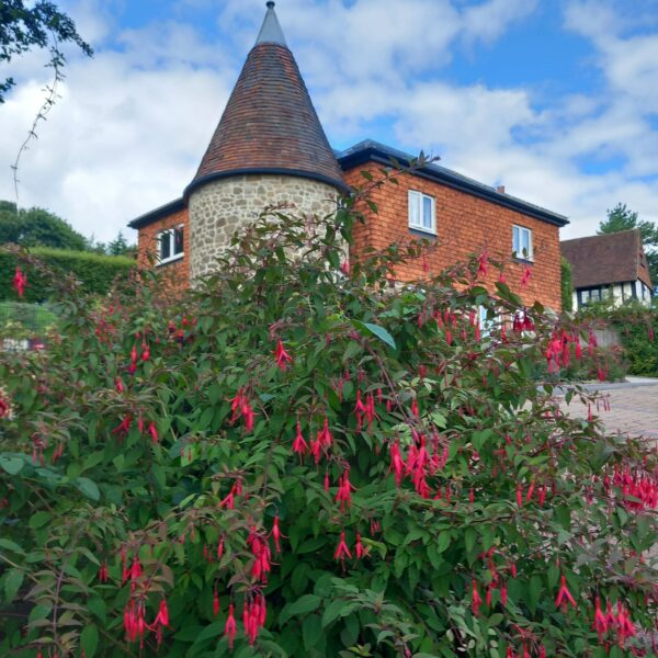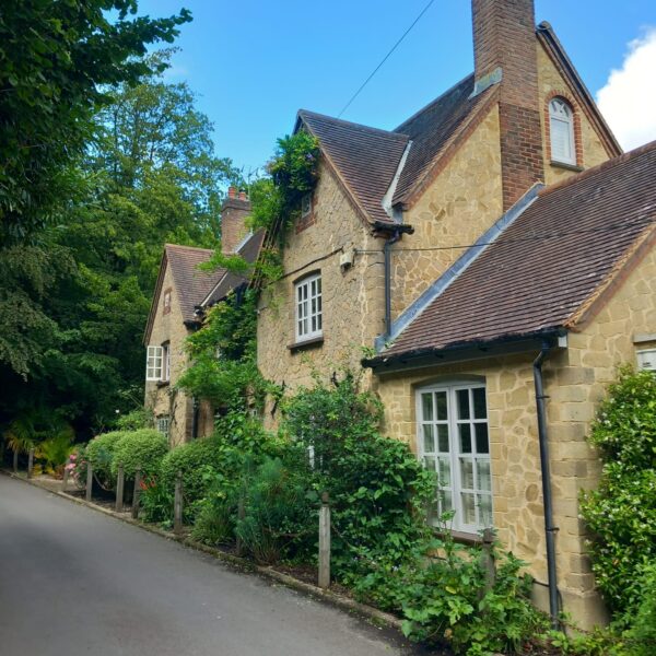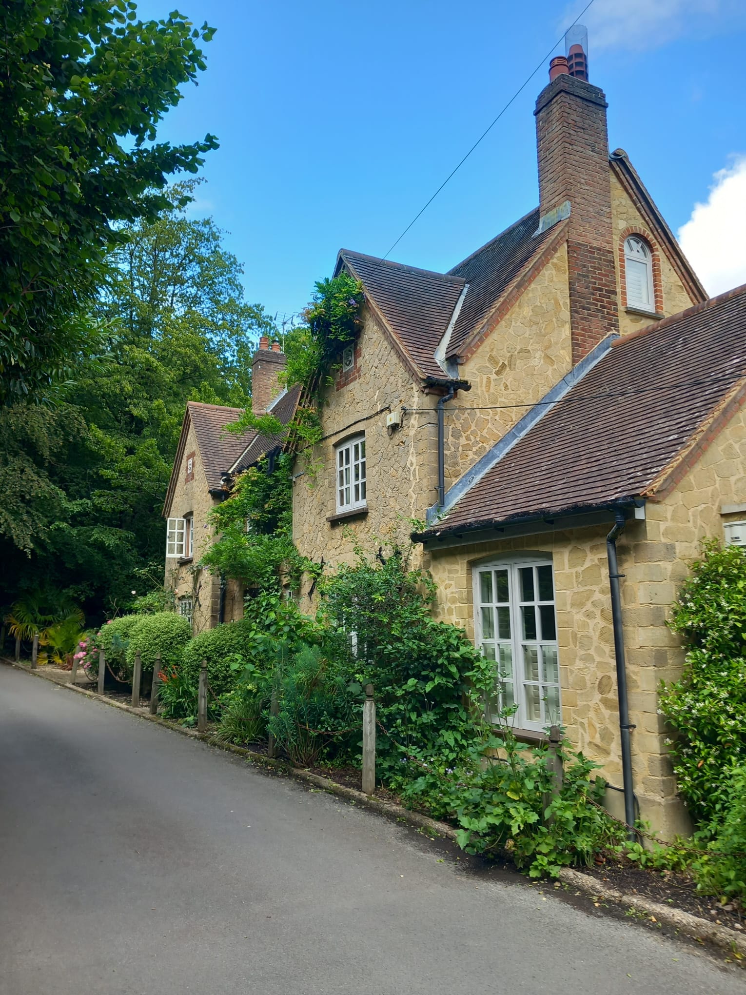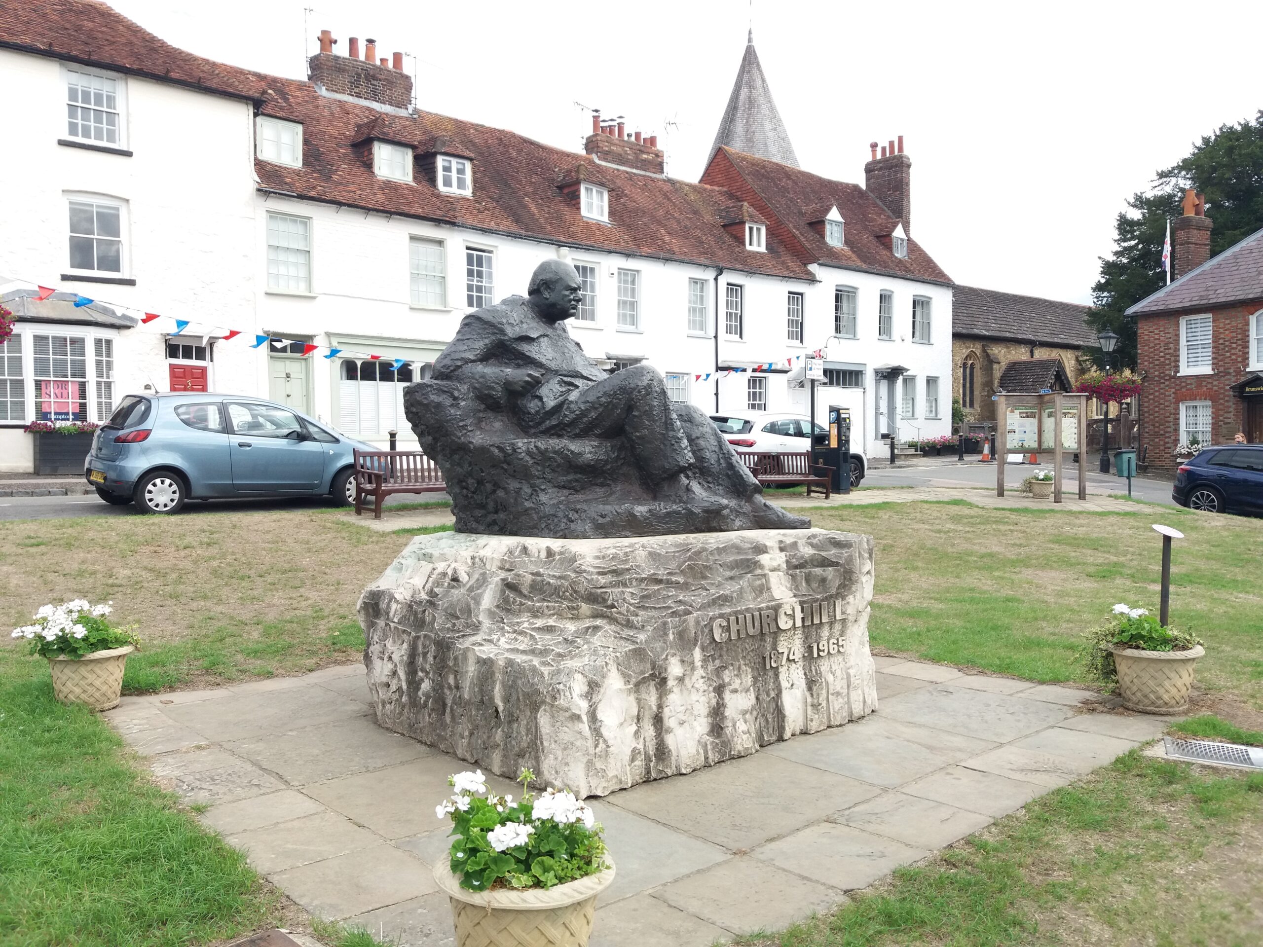 Now on the homeward stretch back to Westerham, we briefly stopped on Hosey Common to admire wild flowers growing as if in a meadow. Another group photo was taken, this time overlooking Westerham below us and the North Downs in the distance. Back on The Green in Westerham, it was fitting that we should see two statues, that of James Wolfe and Churchill.