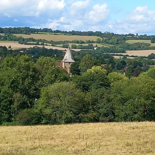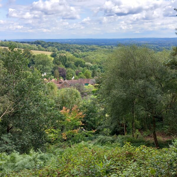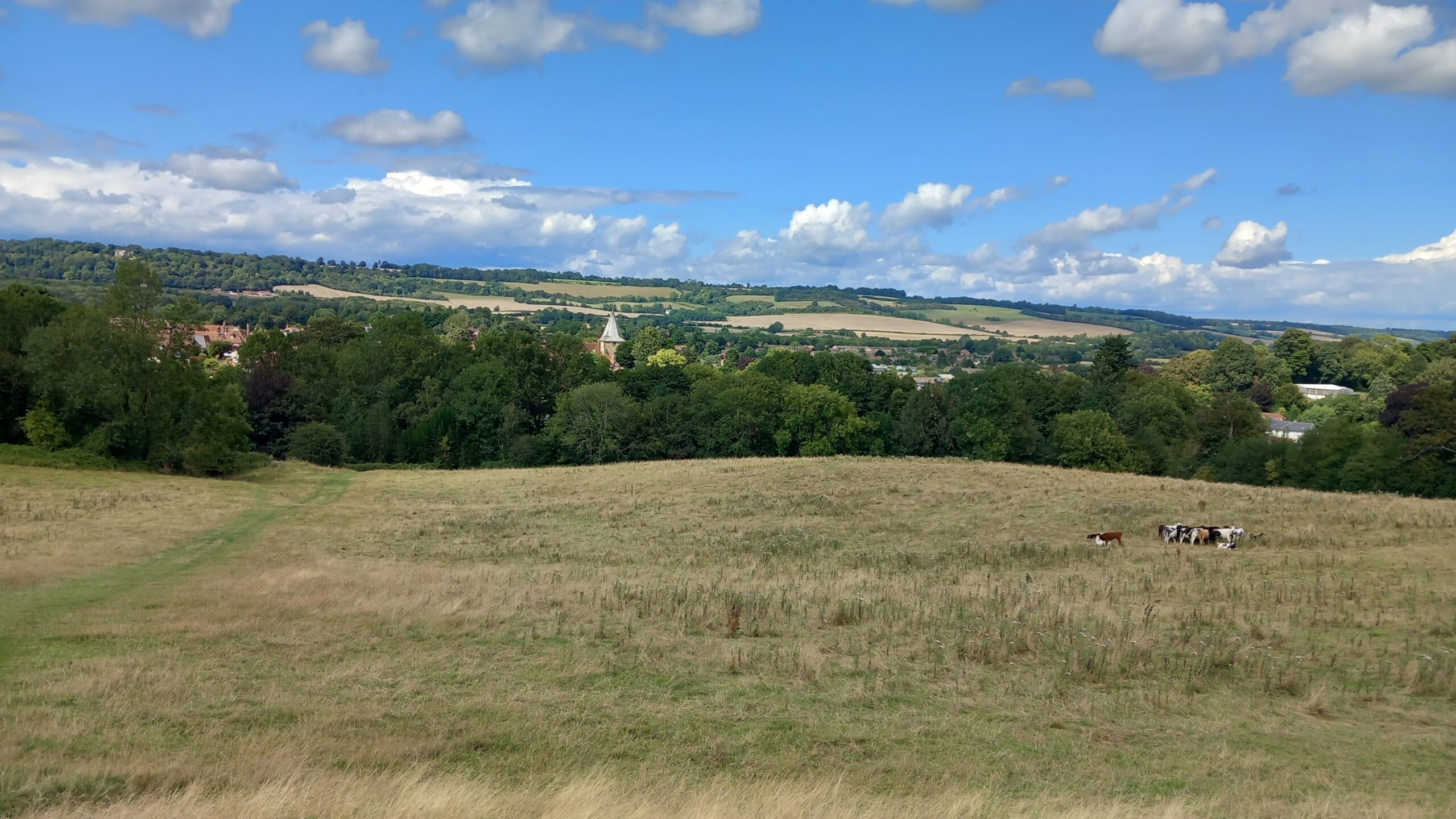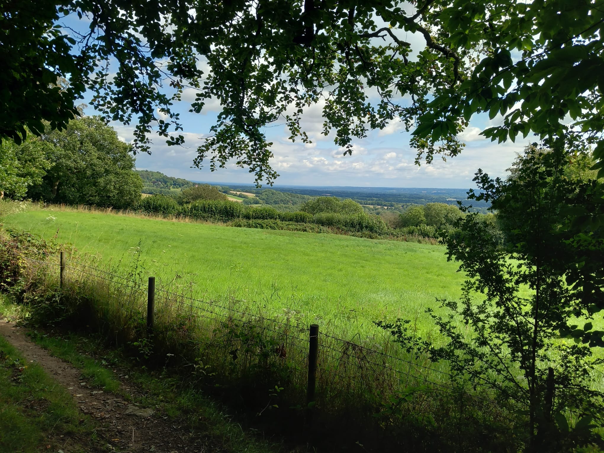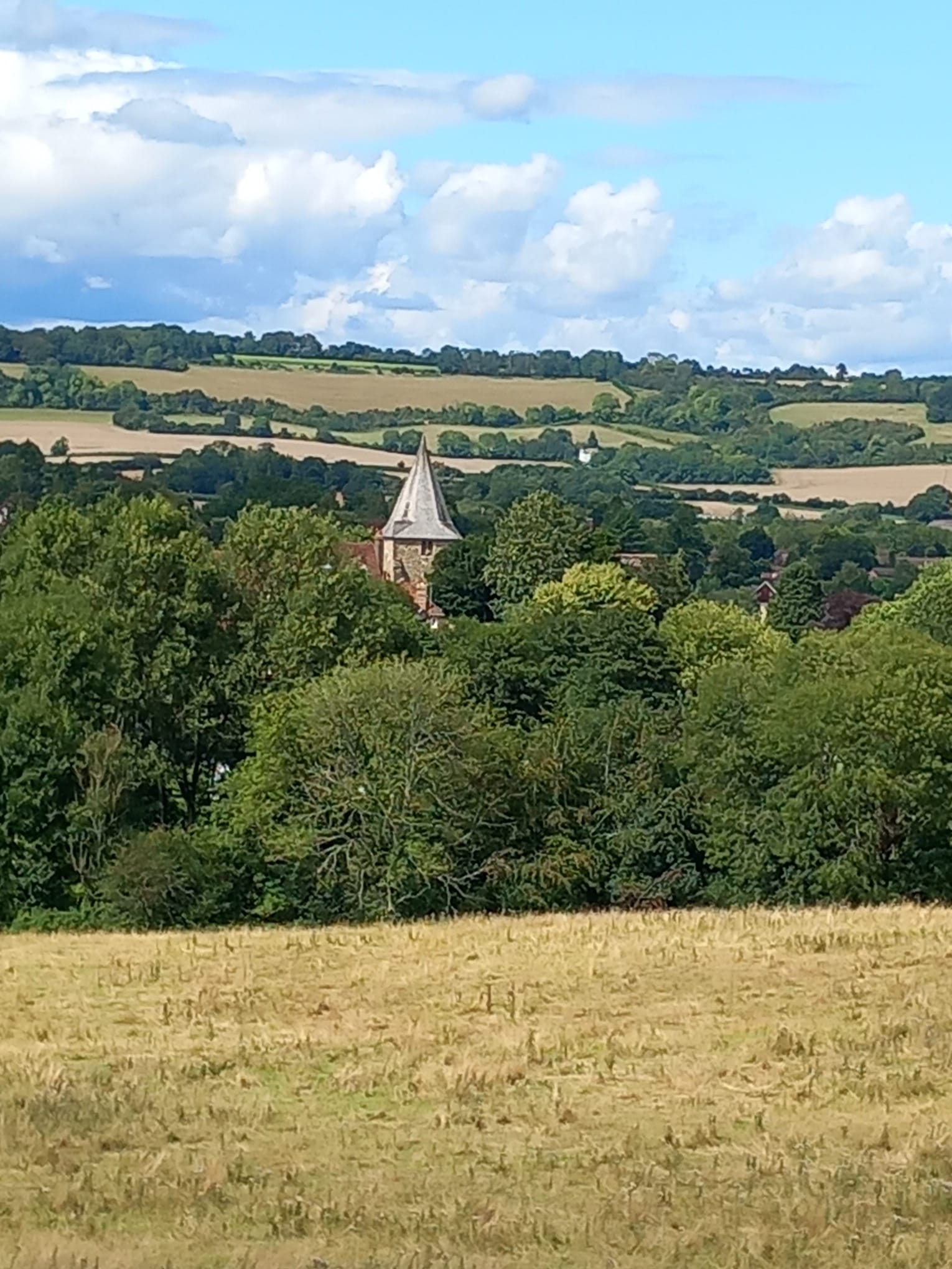 Soon the path took us up to a viewpoint above the town with the North Downs in the background. Onwards, to Limpsfield Common and Chart, just over into Surrey. A short stop outside St Andrew's church before descending down to Crockham Hill and back into Kent.