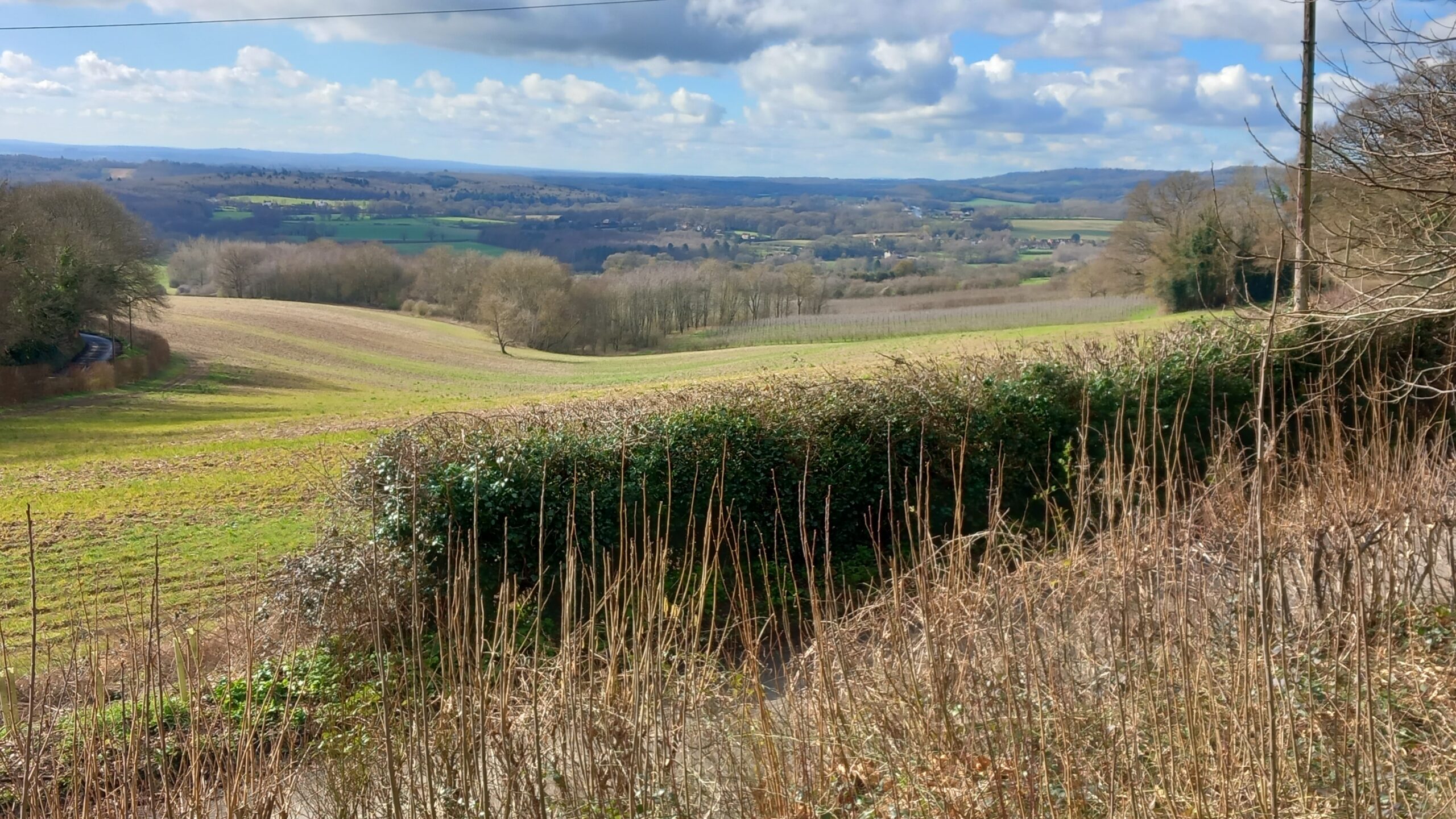 This month's walk was from Wrotham and took us along parts of the Pilgrims' and North Downs Way. The route mostly took us over fields and pleasant country lanes to the villages of Stansted and Fairseat. Although it was cloudy, it was very mild and not too muddy underfoot.